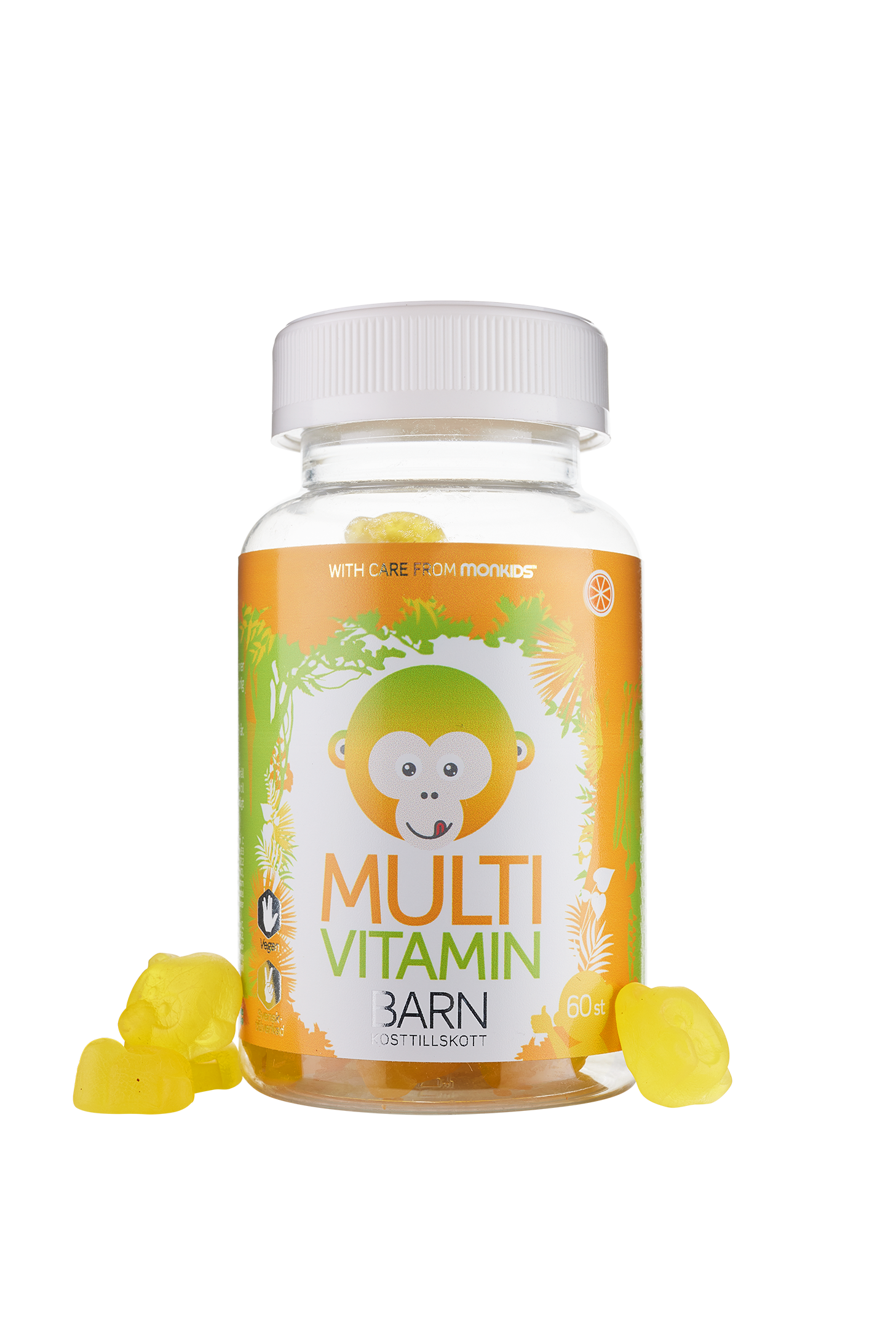 Haluatko antaa lapsellesi vitamiineja, jotka auttavat kehoa kasvamaan ja kehittymään? Silloin Monkids Multivitamin Appelsiini on sinulle sopiva! Herkullinen ja helposti pureskeltava gummy, joka sisältää 11 vitamiinia, joita lapset rakastavat. Yksi gummy päivässä riittää. Ruotsissa valmistettu. Vegaaninen.